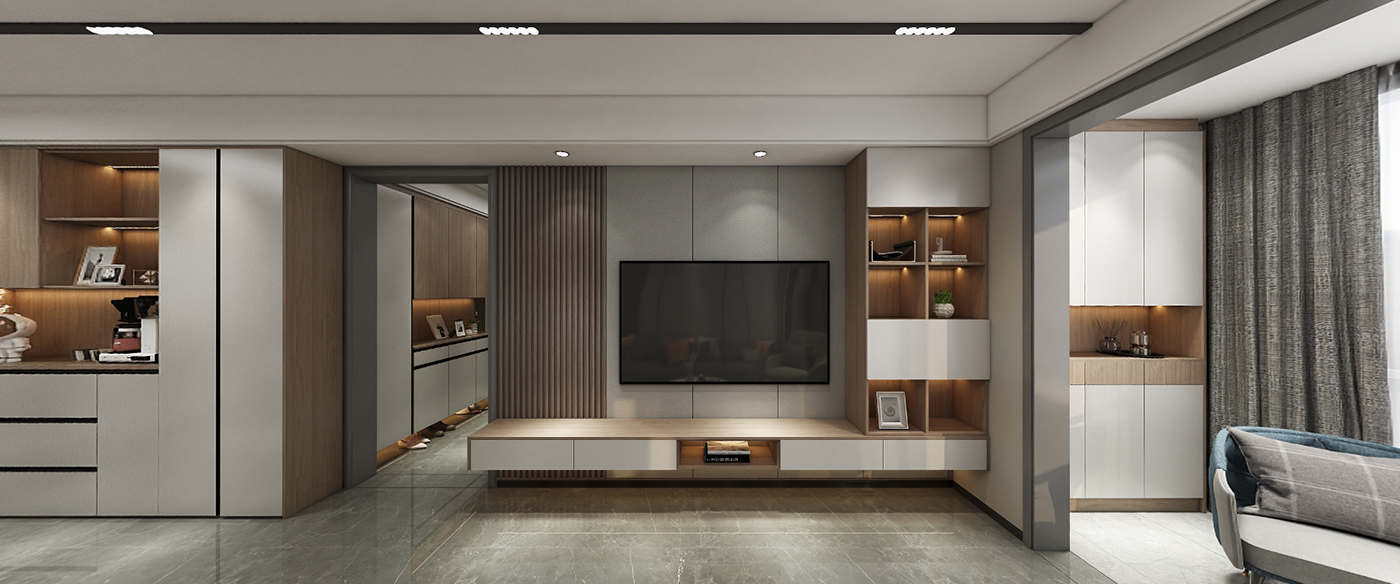隨著極簡風的盛行,人們在家裝時更加傾向于刪繁就簡,因此,免拉手門板在全屋定制中受到追捧,其簡約而不失功能,整體高級、時尚、質感的視覺效果,成為眾多簡約風家庭的選擇。