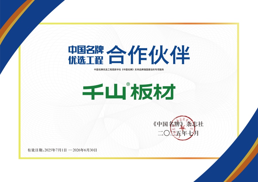 千山板材成為中國名牌優(yōu)選工程合作伙伴,獲權威媒體平臺認證!