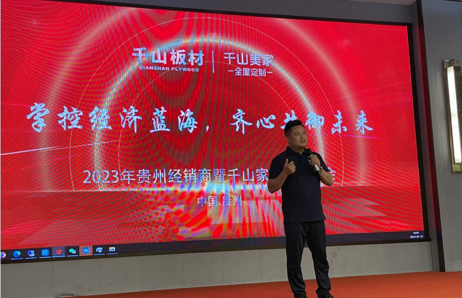 7月31日,千山2023年貴州經銷商暨千山家具板招商會在貴陽隆重啟幕。本次大會以“掌控經濟藍海 齊心共御未來”為主題,進行產品培訓、優(yōu)秀經銷商頒獎、政策宣講等多項活動。100余名貴州經銷商、家具廠大咖齊聚,聚焦家具板發(fā)展趨勢,共商合作。