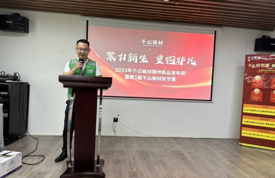 2023年9月26日,千山板材第五屆雙節惠暨千山板材新品發布會在江西省贛州市火爆開啟!活動時間長達一個月,工廠直供,產品質量優異,價格實打實優惠!本次活動不僅為消費者提供了勁爆的優惠政策,更是奉上了一系列驚喜豪禮與真摯服務。