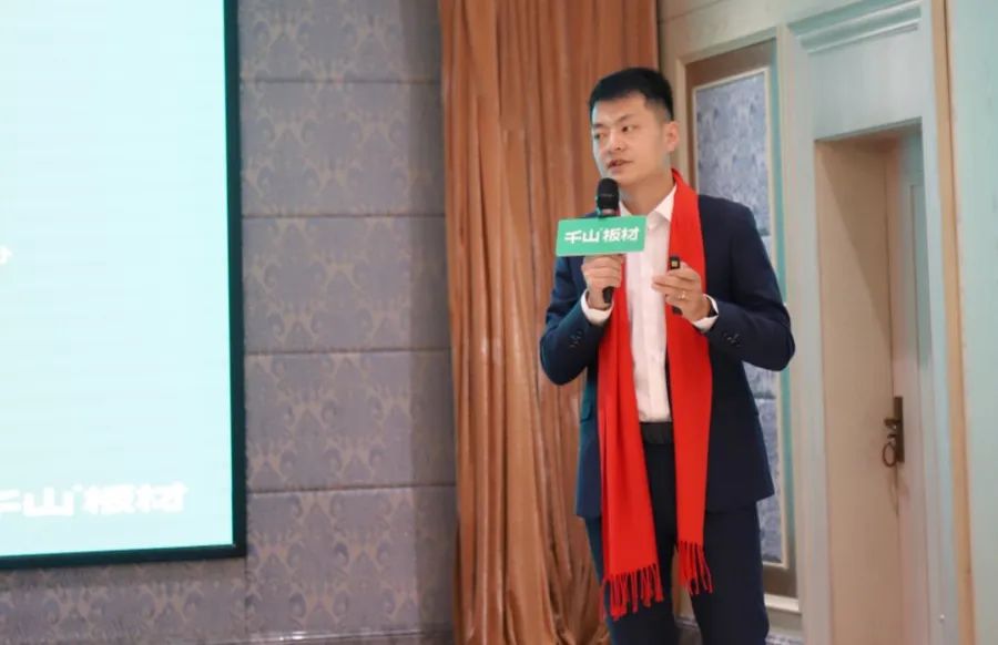 銷售部大區經理史生平以全屋定制迅速發展、行業競爭加劇的背景為切入點,從2024年全新的產品體系、產品特點、銷售支持等方面詳細闡述了千山板材的綜合優勢。