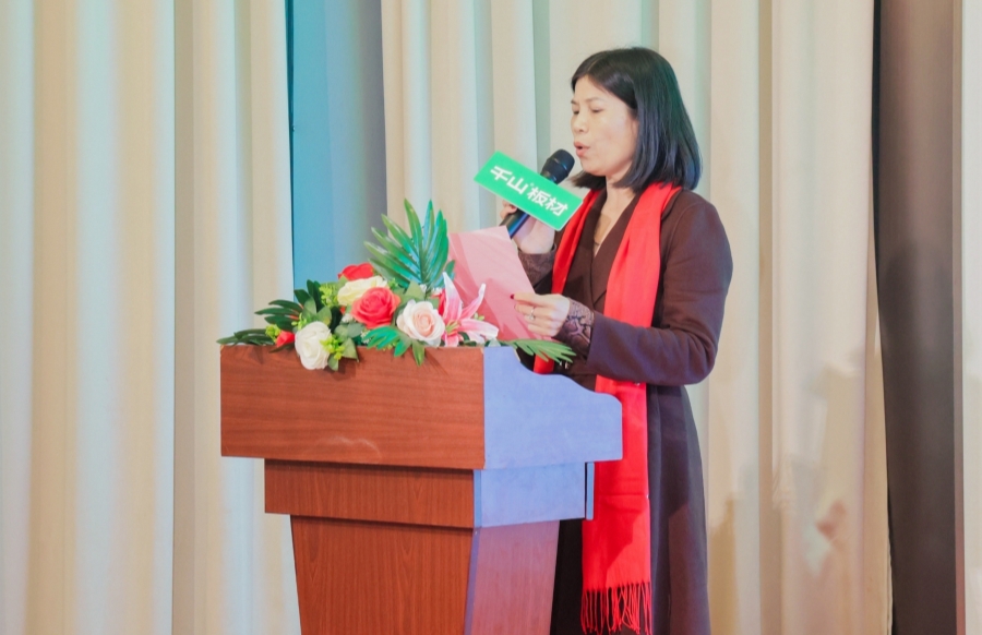 千山板材衡陽倉負責人肖小燕登臺致辭,肖總感謝各位經銷商、合作伙伴撥冗而至。肖總表示,衡陽市場的蓬勃發(fā)展,離不開所有伙伴的傾力扶持和砥礪拼搏,并以實力、以信心收獲了屬于千山人的累累碩果。