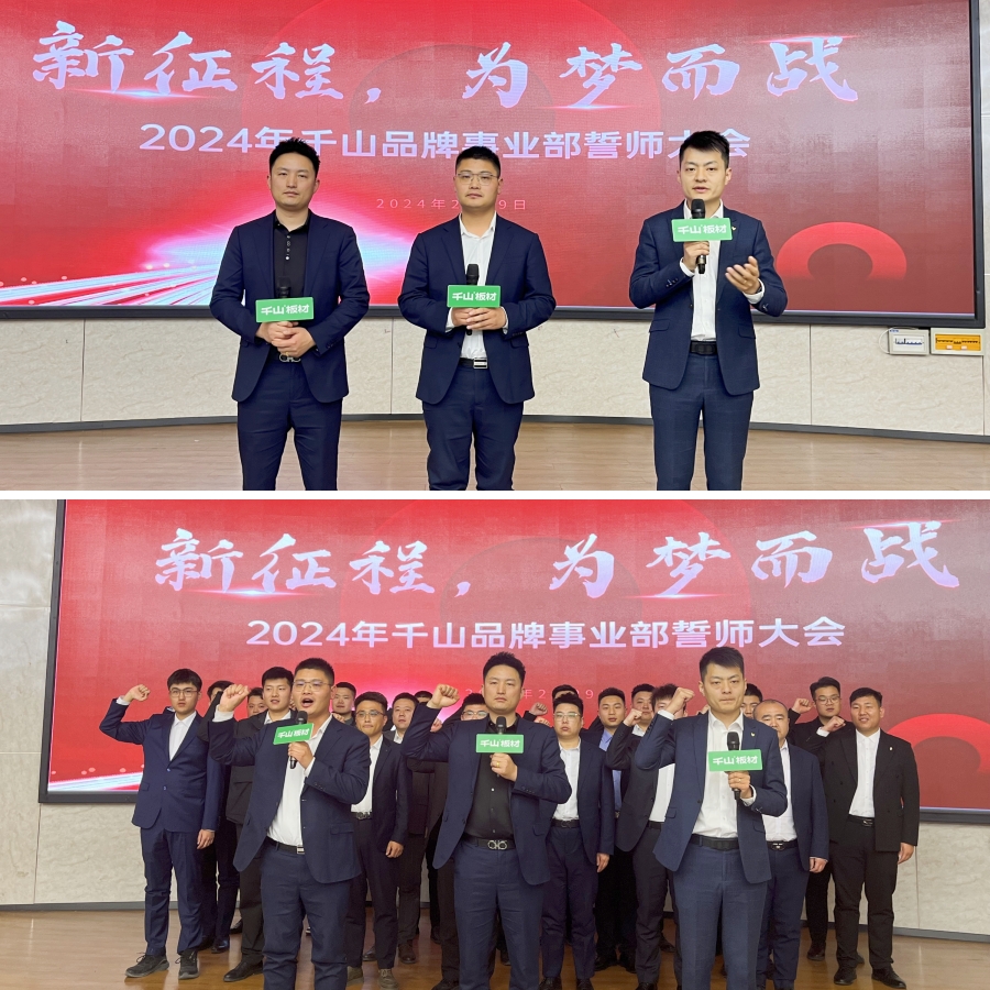 2024年2月,“新征程 為夢(mèng)而戰(zhàn)”2024千山品牌事業(yè)部誓師大會(huì)高燃啟動(dòng)。全體營(yíng)銷精英集結(jié)一堂,簽署目標(biāo)軍令狀,燃情宣誓,吹響全面決勝的集結(jié)號(hào),奮力沖刺全年銷售目標(biāo)。