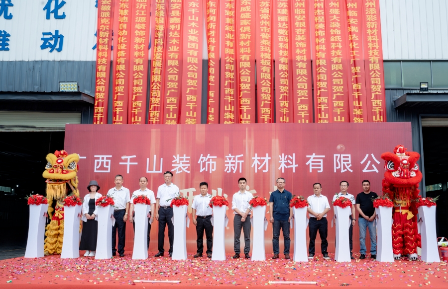 2024年5月25日,千山集團(tuán)廣西生產(chǎn)基地盛大開(kāi)業(yè)!作為專業(yè)的三聚氰胺浸漬紙和配套膠水供應(yīng)商,廣西千山裝飾新材料有限公司占地面積15000平方米,計(jì)劃建設(shè)浸漬貼面紙生產(chǎn)線10條,年產(chǎn)浸漬貼面紙3000萬(wàn)張,同時(shí)配套生產(chǎn)環(huán)保膠水。廣西基地的起航必將助力千山蓄長(zhǎng)虹之勢(shì),邁向發(fā)展新高峰!