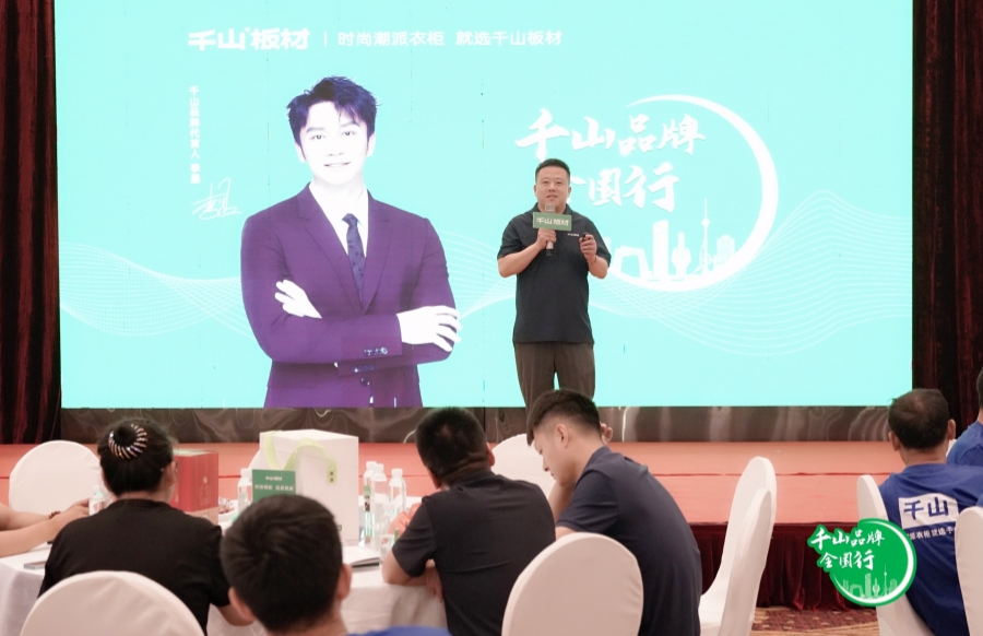 千山板材朝陽倉負責人周寶奇致辭。周總分享了自己與千山共同成長的故事,在與千山的合作中,深刻體會到品牌發展的力量。周總鼓勵大家發揮自身優勢和千山的品牌效應,贏得市場以及消費者的信任。