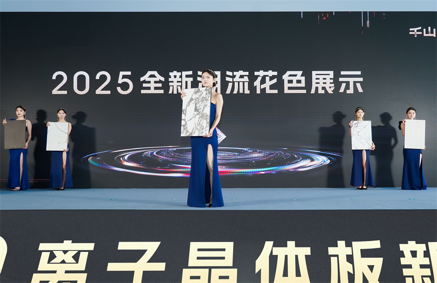 作為本次發(fā)布會的又一重頭戲,千山板材2025新品花色也成為了眾人矚目的焦點,王總揭開其神秘面紗:布紋系列—云錦灰布紋、云錦白布紋,石紋系列—鐵銹紅、輕奢水磨石、白玉洞石、水墨潘多拉、冰紋奢石,數(shù)碼系列—寶格麗白、灰影木、白影木。