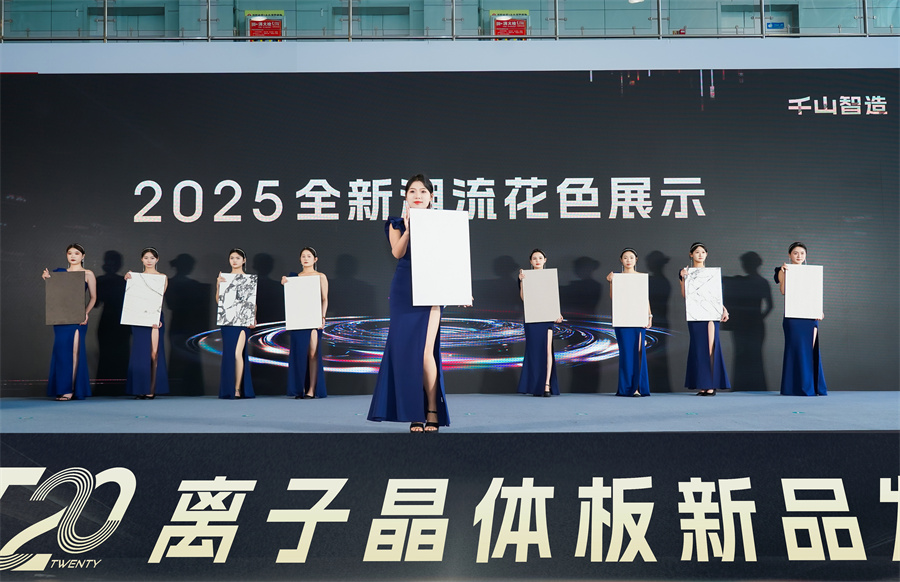 領導嘉賓們共同登臺,進行T20離子晶體板首發(fā)的啟動儀式。千山T20離子晶體板的正式上市,不僅標志著千山板材正式邁入“離子晶體板”時代,更預示著千山向著更高智造標準跨越式進階。