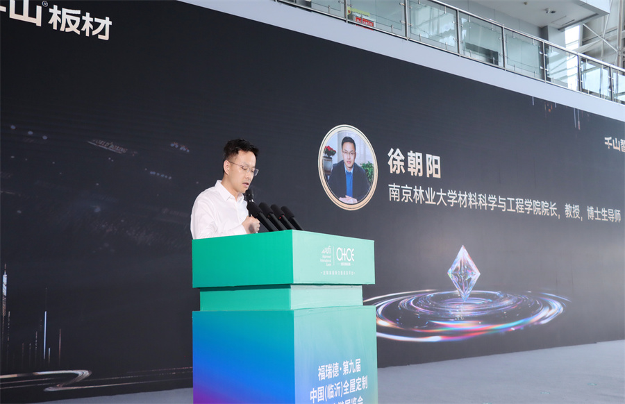 南京林業(yè)大學材料科學與工程學院院長徐朝陽致辭。徐院長表示,千山作為家居板材領域的領航企業(yè),始終秉承“健康、環(huán)保、創(chuàng)新”的理念,以卓越的產品力和市場表現(xiàn)力贏得了消費者的信賴。T20離子晶體板是千山與學院共同研發(fā),不僅延續(xù)了千山板材一貫的高品質,更在物理性能上實現(xiàn)了全新的突破。