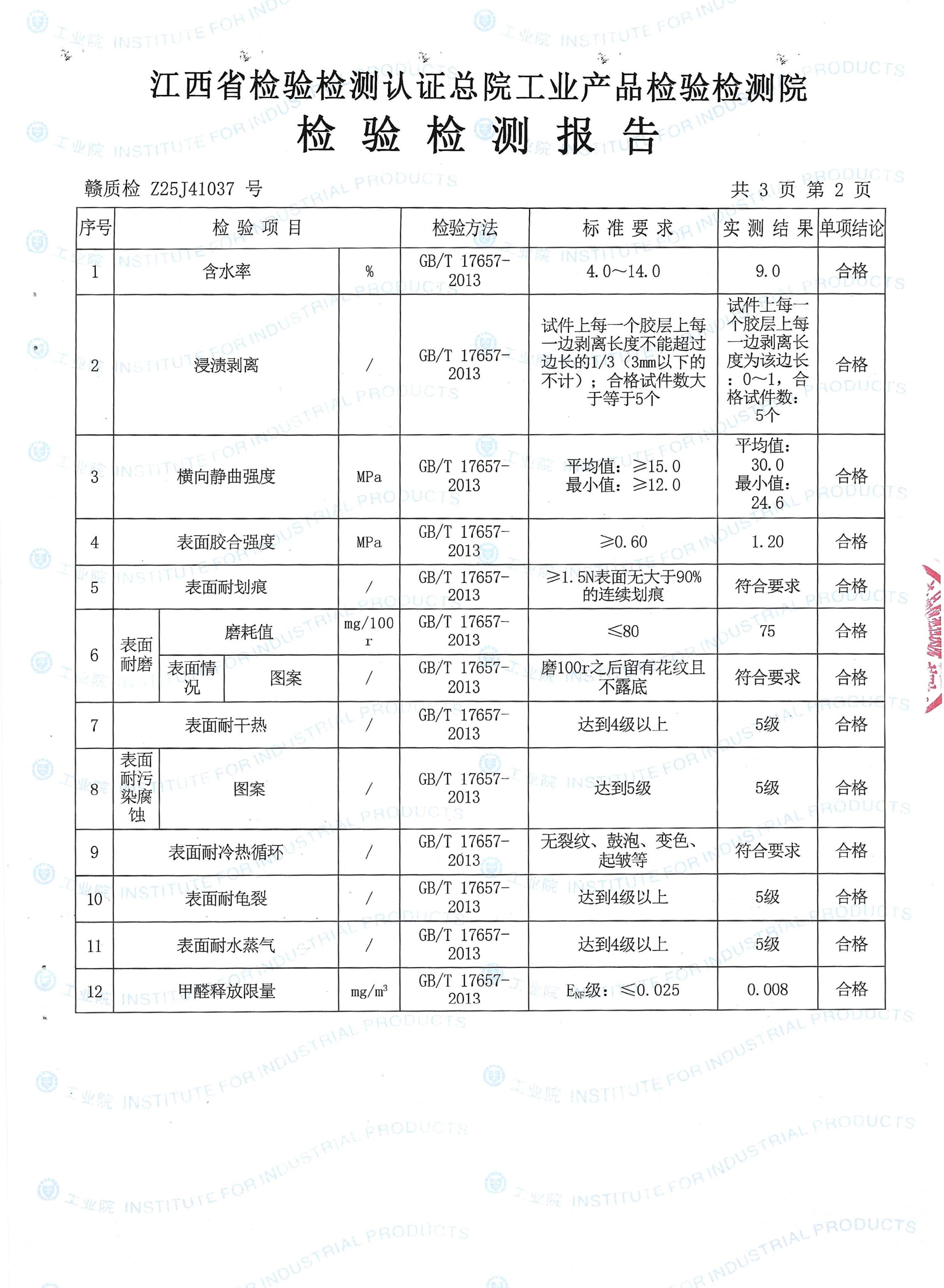 板材是否“經(jīng)久耐用”,需要通過專業(yè)的靜曲強度、膠合強度、耐磨性等多維度物理指標(biāo)來驗證,而千山板材在此次抽檢中,交出了一份“全優(yōu)答卷”。在全方位性能檢測中,千山板材的含水率、浸漬剝離強度、表面耐劃痕性能、表面耐磨性均優(yōu)于國家標(biāo)準(zhǔn)要求。