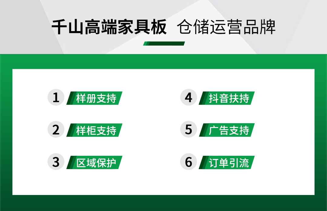 2023年將是千山家具板事業快速增長的一年,依托倉配一體化運營模式,家具板倉儲未來發展潛力巨大。與全國家具廠的深度合作,將不斷強化千山家具板運營模式,更大的發揮千山家具板的產品優勢!