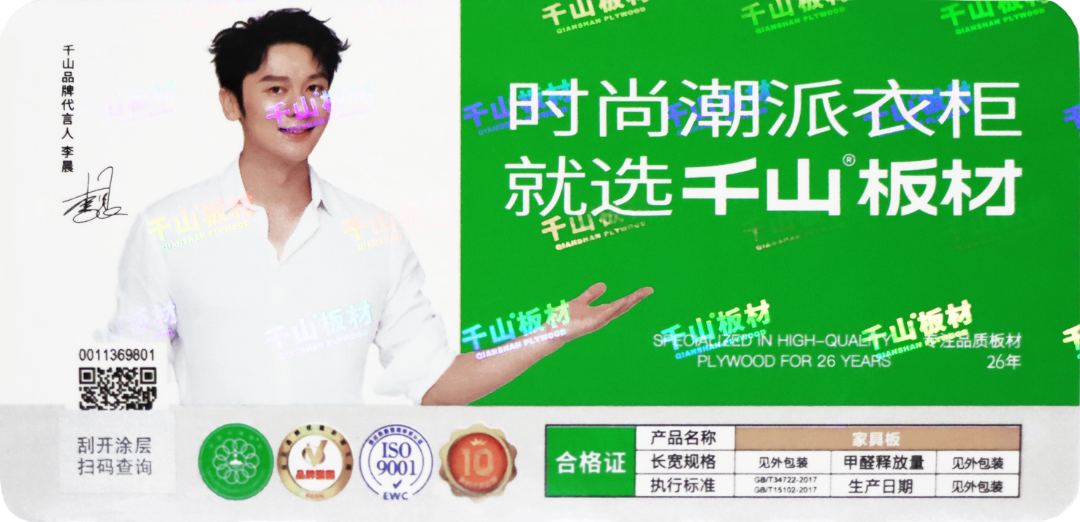 千山板材產品在生產過程中,均加入了可鑒別、可查詢的防偽標識,正品千山板材均有防偽商標及防偽編碼。