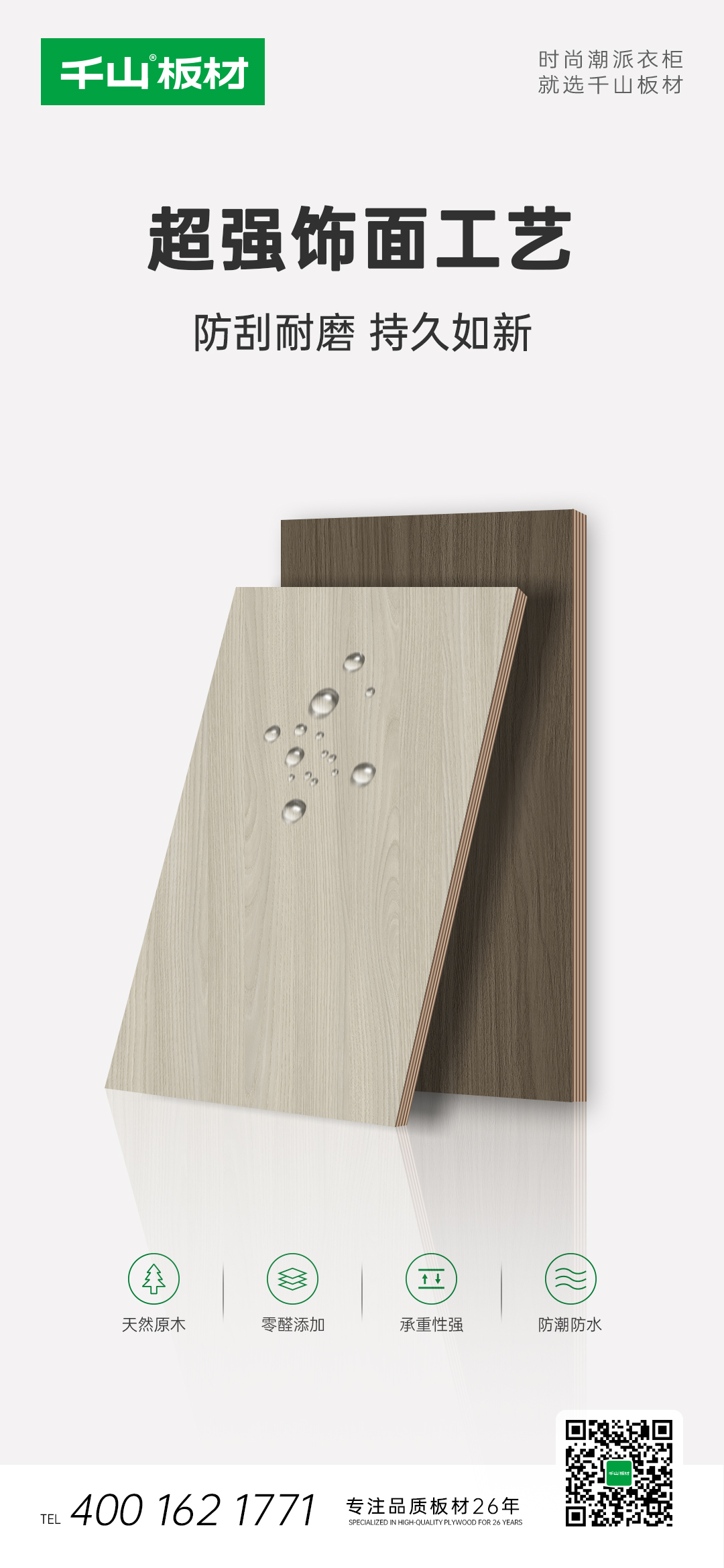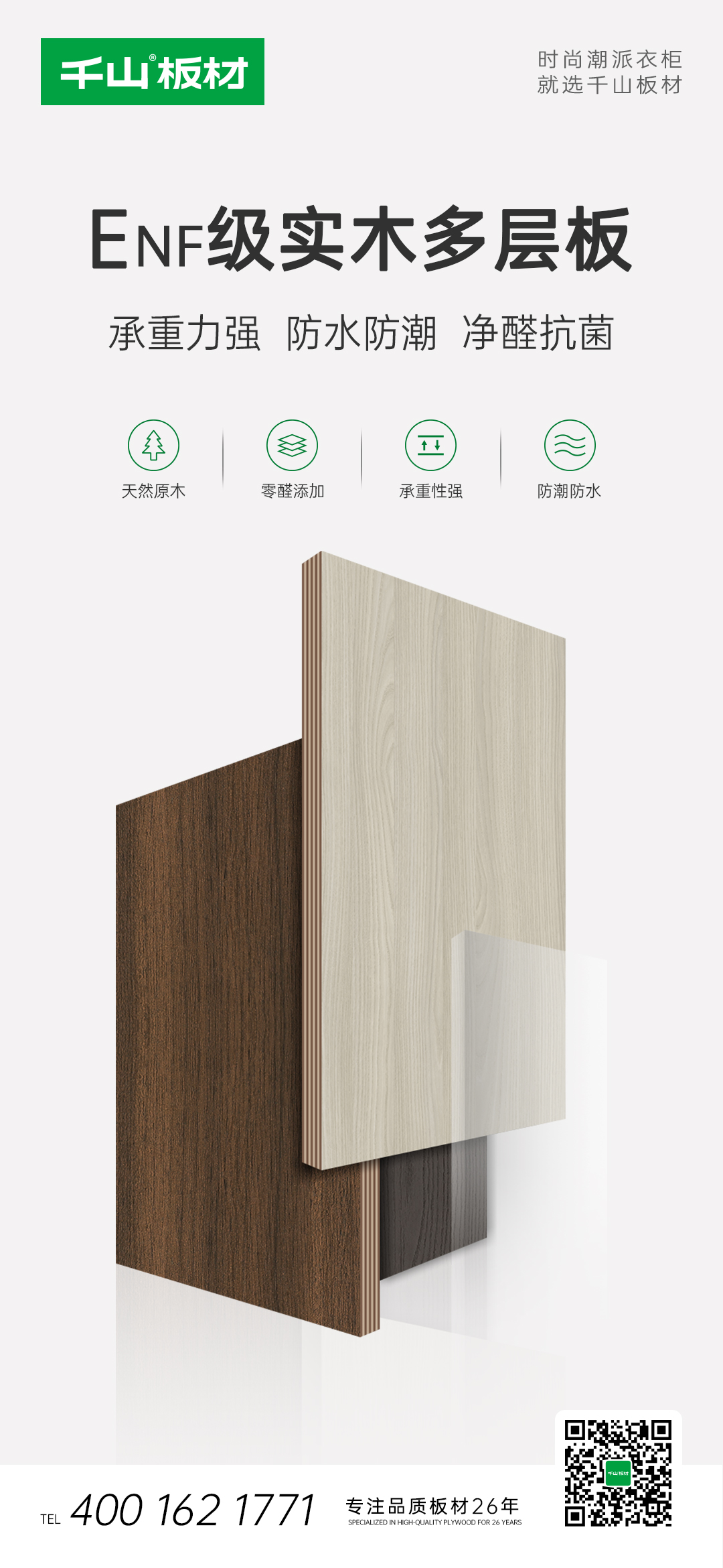 千山板材實木多層板以高環保性、高穩定性、高防潮性等多重領先優勢,滿足千萬家庭對品質的更高要求。歡迎光臨當地千山板材品牌專賣店選購。