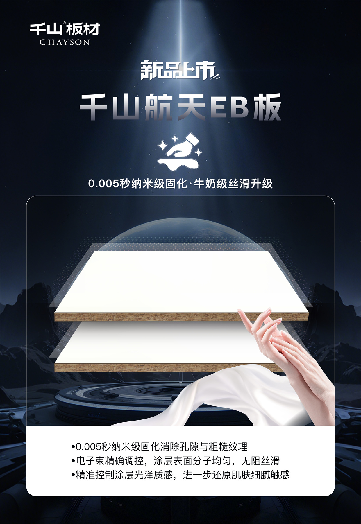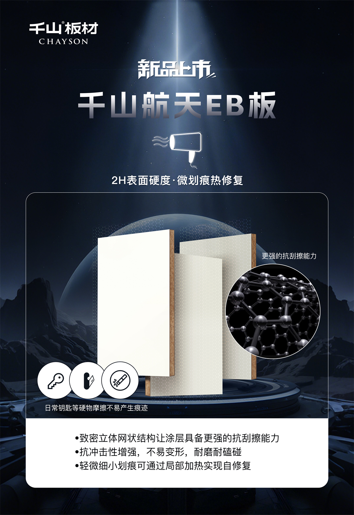 千山板材汲取航天科技靈感,重磅推出新一代高端門板產(chǎn)品——千山航天EB板,以“黑科技”工藝,將卓越的物理性能與高級(jí)質(zhì)感完美融合,為我們的家居空間披上“高能鎧甲”!