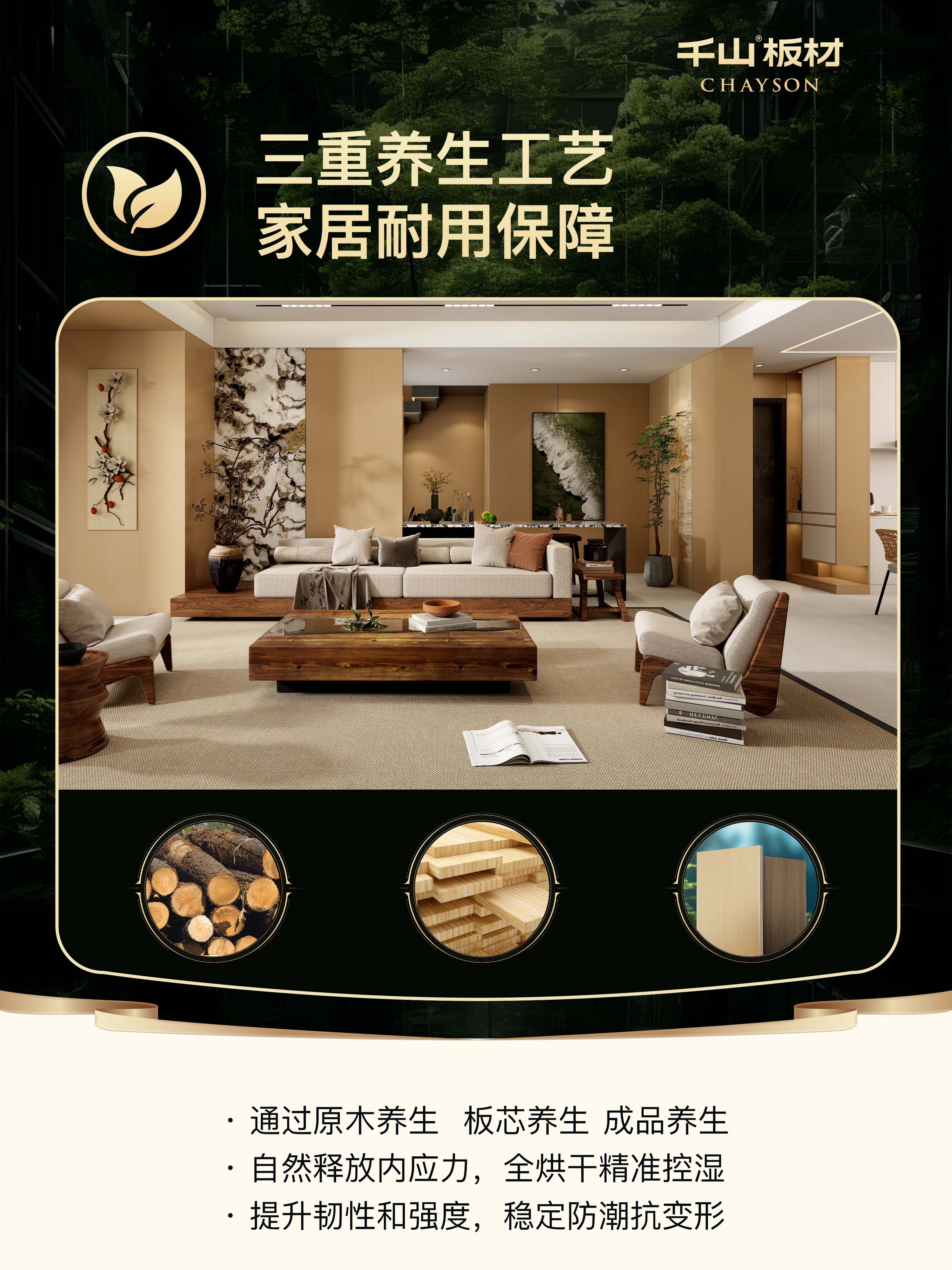 天然原木感,藏著性能穩定的安心,鑄就高端實木品質。千山原木板,定格美好家居,開啟質感生活新風尚。歡迎當地專賣店鑒賞咨詢!