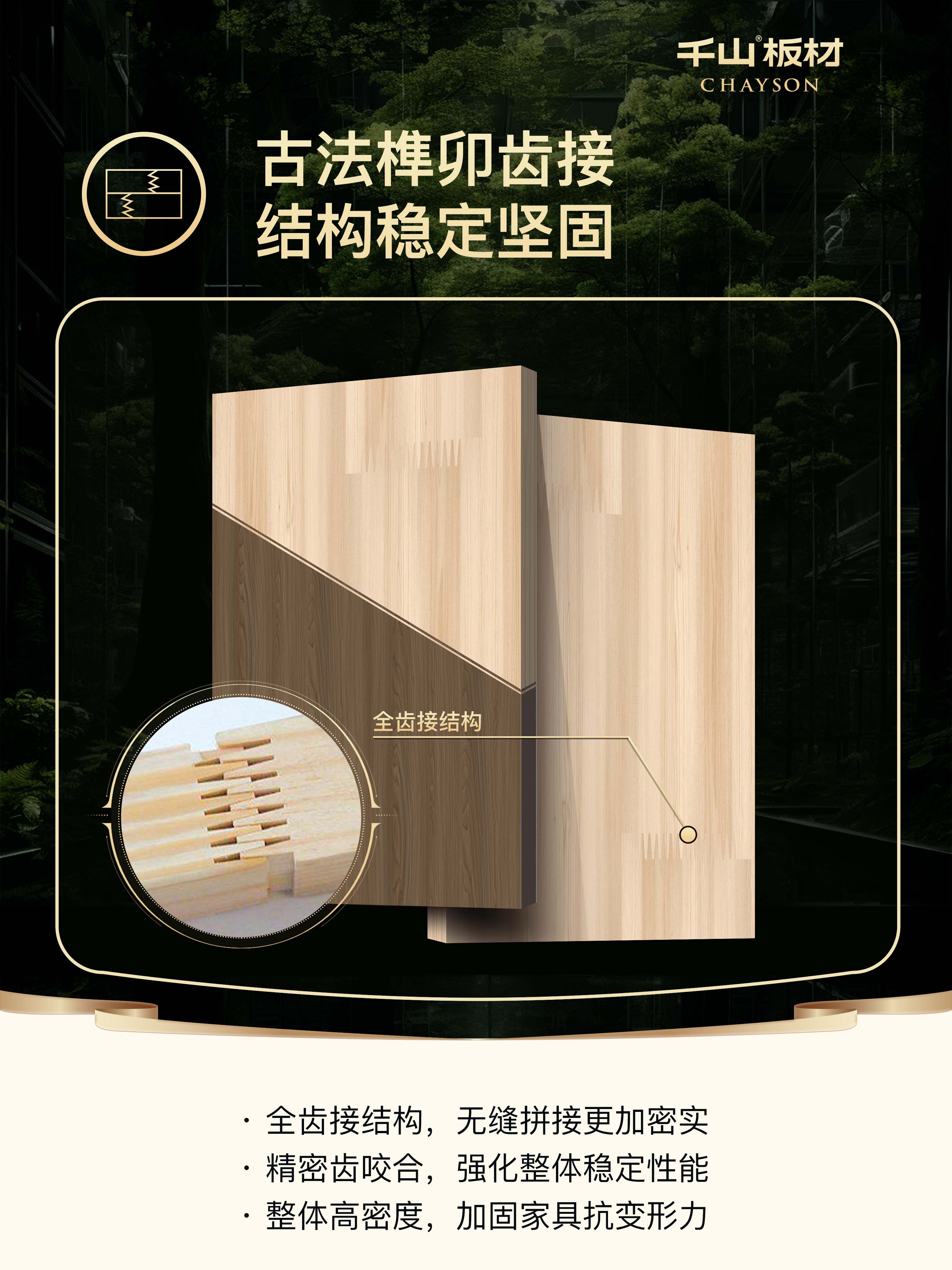 千山原木板采用全齒接工藝,通過精密咬合結構強化整體穩定性,既保留木材的自然屬性,又顯著優化承重性能,握釘力更強。